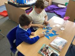 This week the children have started their art work by researching local artist Brian Wildsmith. Here they are putting together jigsaws of some of his artwork to get clues about what he painted.