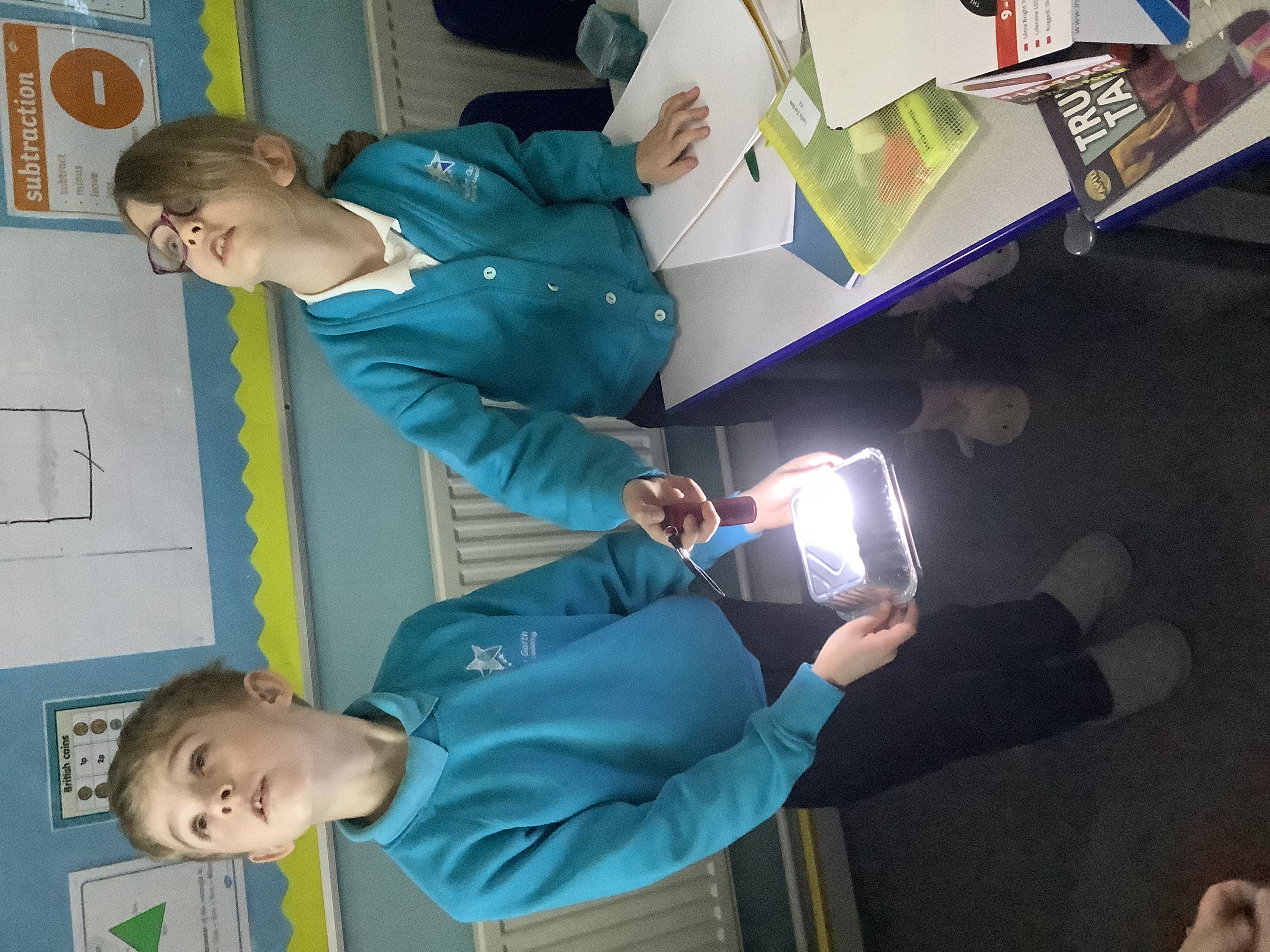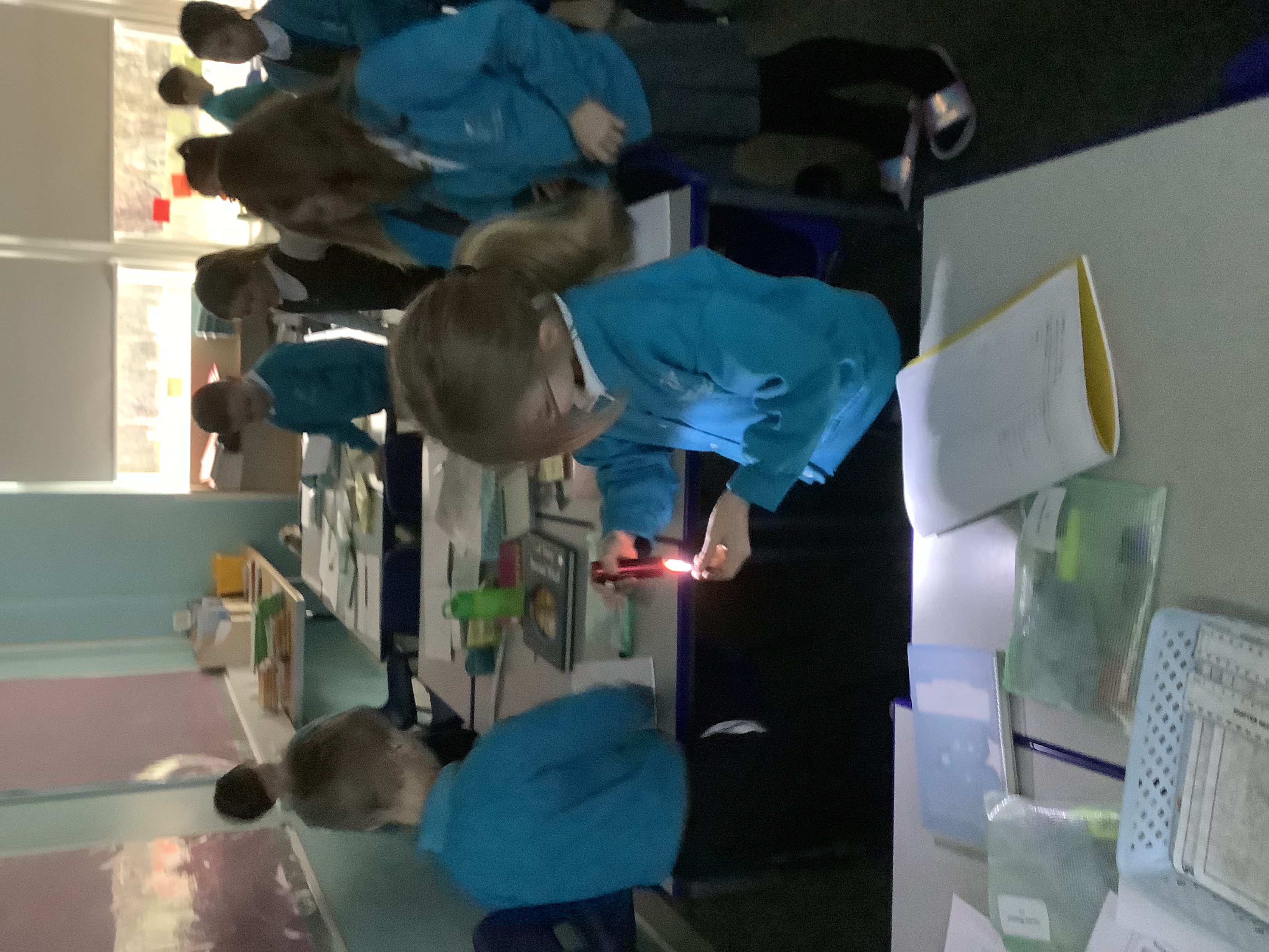 Year 3 continued with their Science topic of light this week. They thought about what materials might reflect light and investigated this with torches. We discovered that smooth, shiny, flat surfaces worked best.