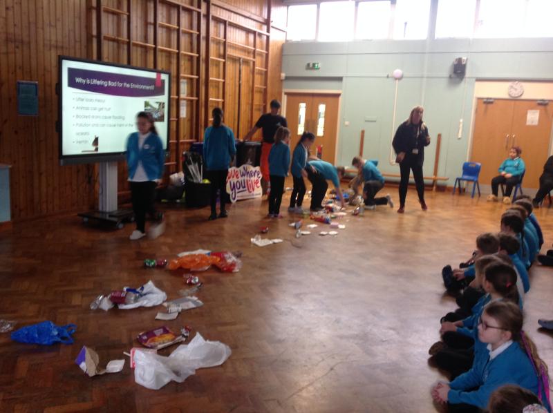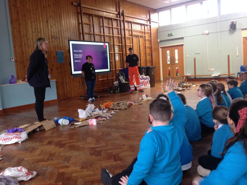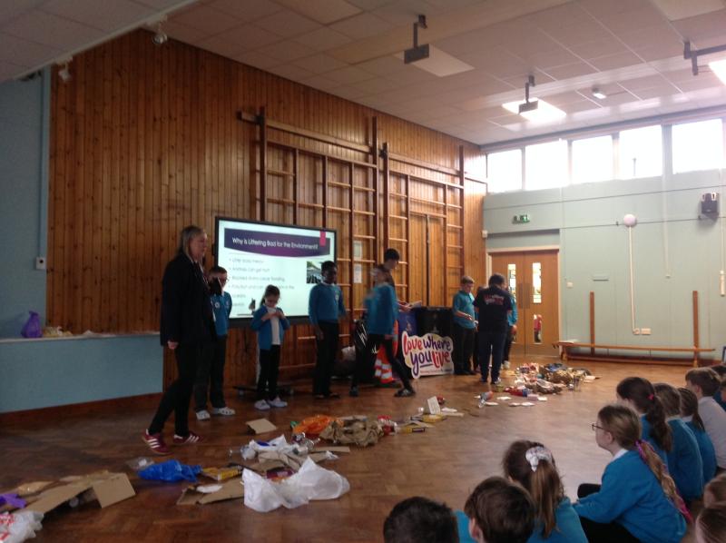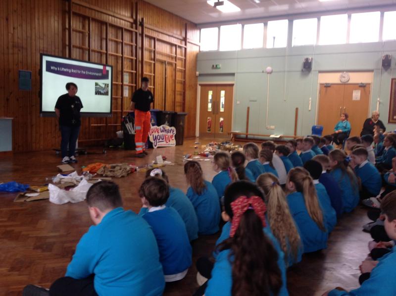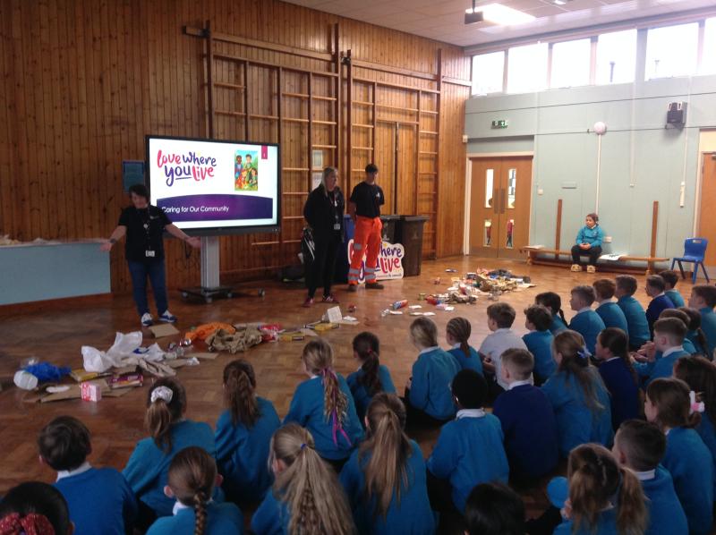 KS2 were visited by the Love Where You Live Action Team to look at how we can keep our comminity tidy. We learned lots of facts like: a banana skin takes 2 years to decompose and lots of information about recycling.