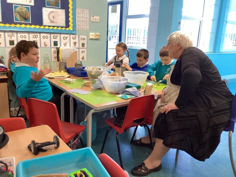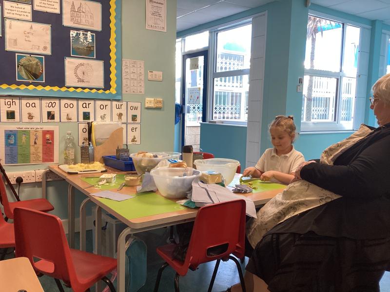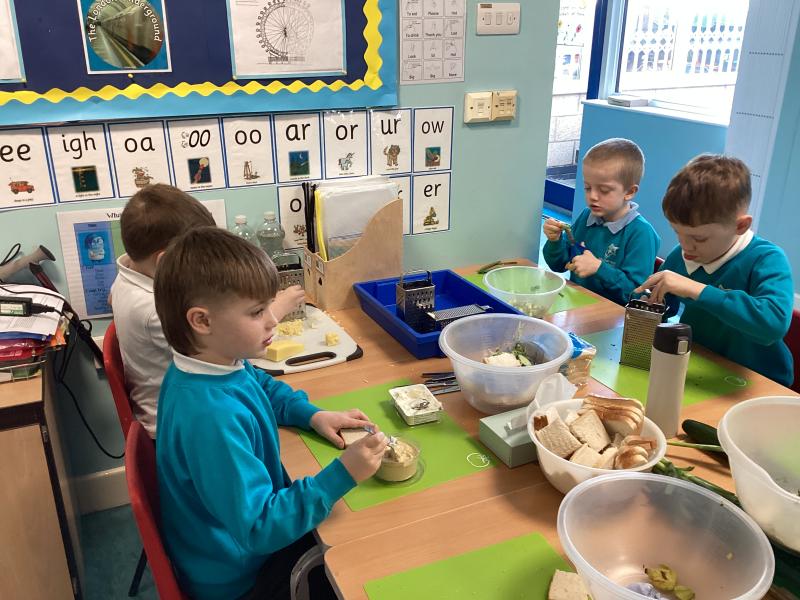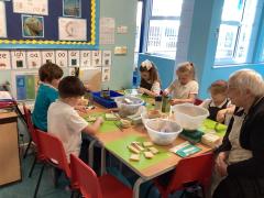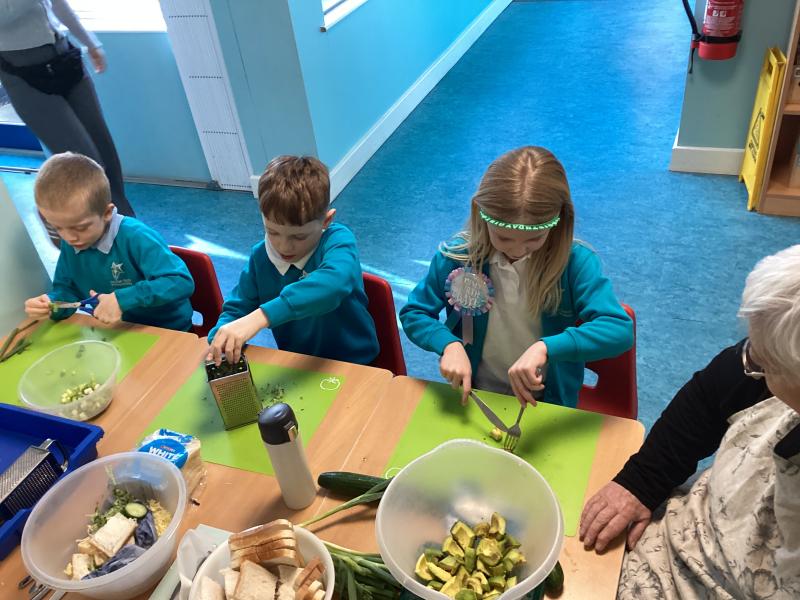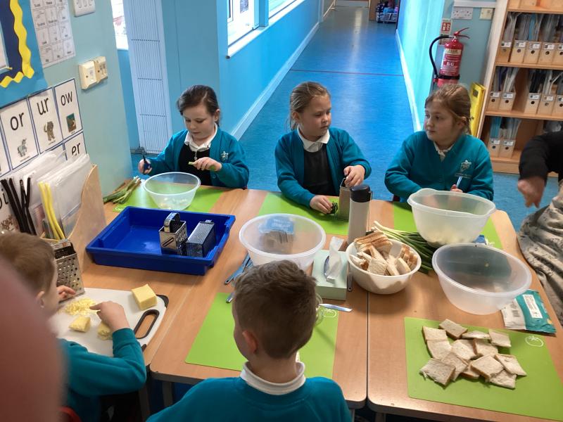Here are the children learning how to use kitchen equipment safely, to prepare food!