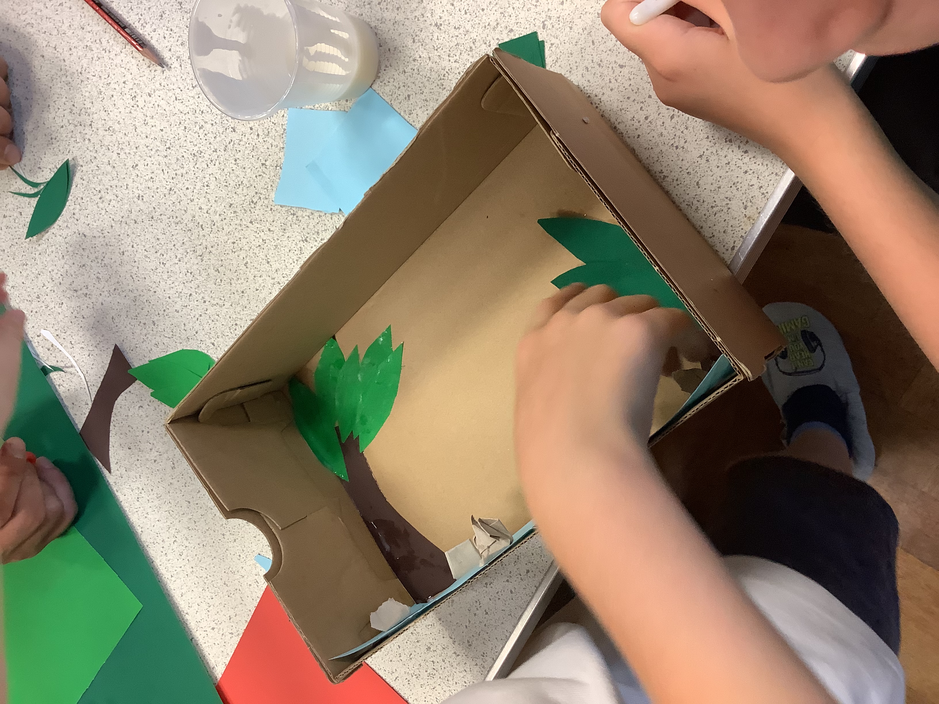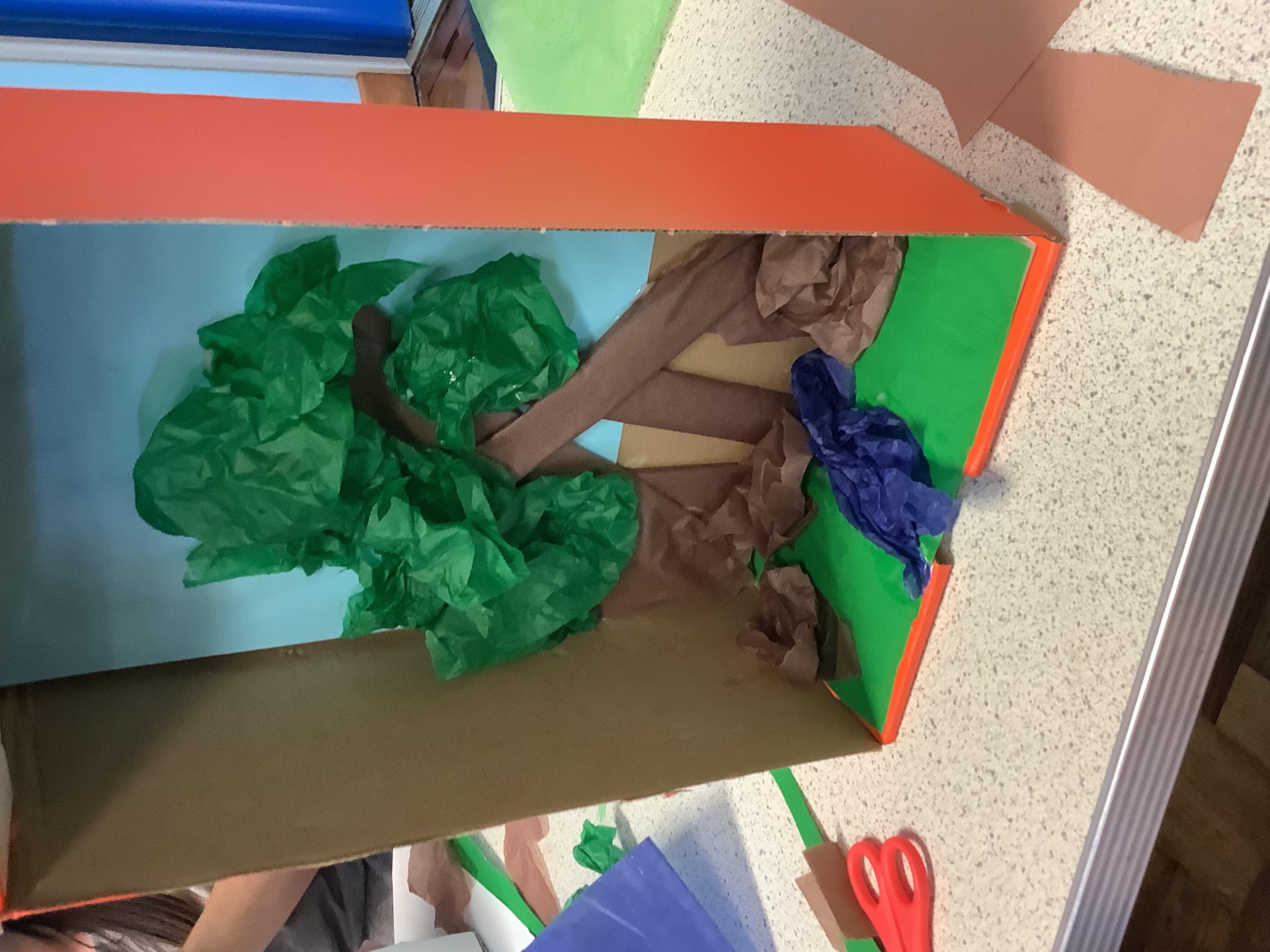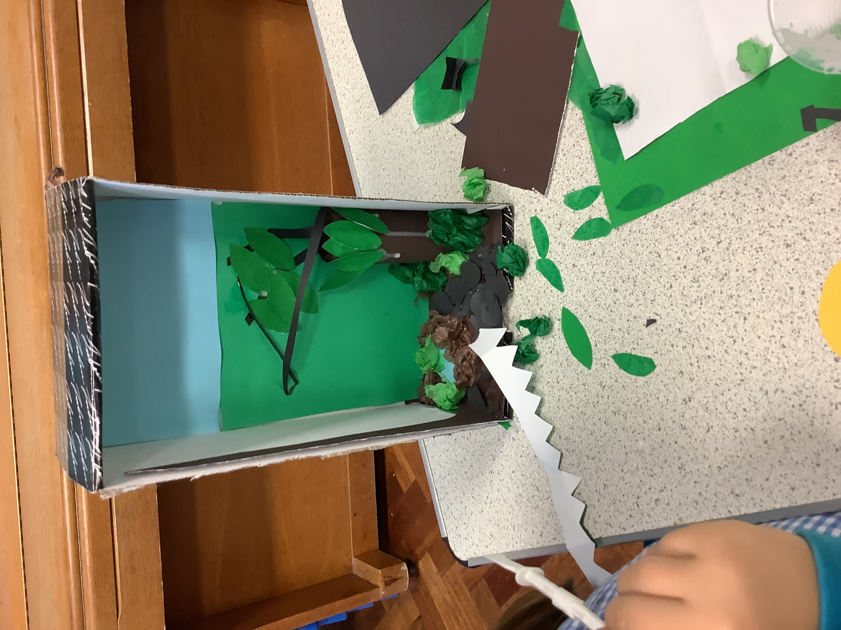 To anyone who didn't attend, the children were asked to create a rainforest in a box. They needed to think about the layers of a rainforest and the different colours that might be seen with focus on the different shades of green that would be in a rainforest. The scenes they made were wonderful and they really let their creativity flow - the parents did tooI think!