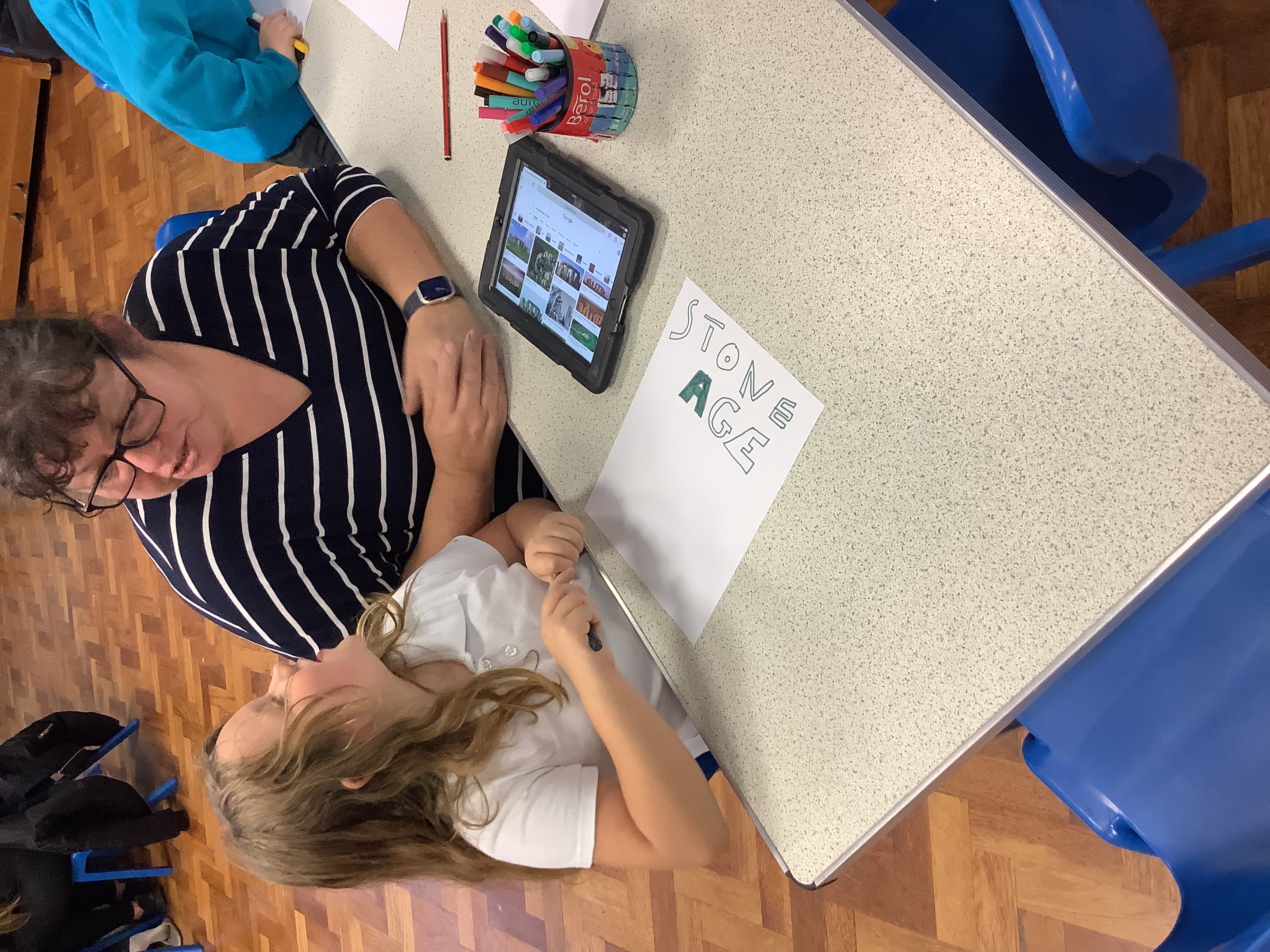 The children had a lovely afternoon last week learning about the Stone Age with their parents. We managed to do 4 different activities linked to this topic including making tools, clay pots and cave paintings.
