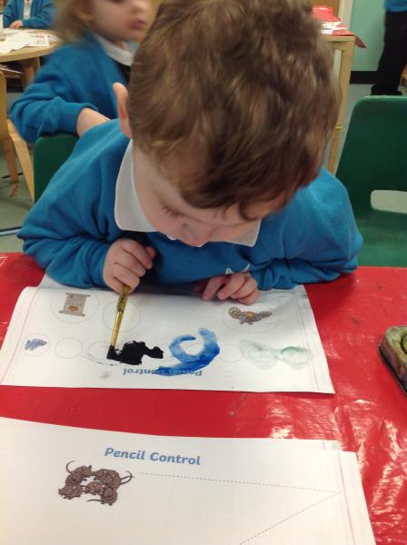 The children in Foundation Stage 1 have been building their early writing and fine‑motor skills through a range of pencil control activities. They have been practising making marks and patterns using pencils, exploring careful brush movements with watercolours, and developing pre‑writing skills through tactile mark‑making in sand trays. These activities have helped strengthen hand muscles, improve coordination, and build confidence in their early mark‑making abilities.