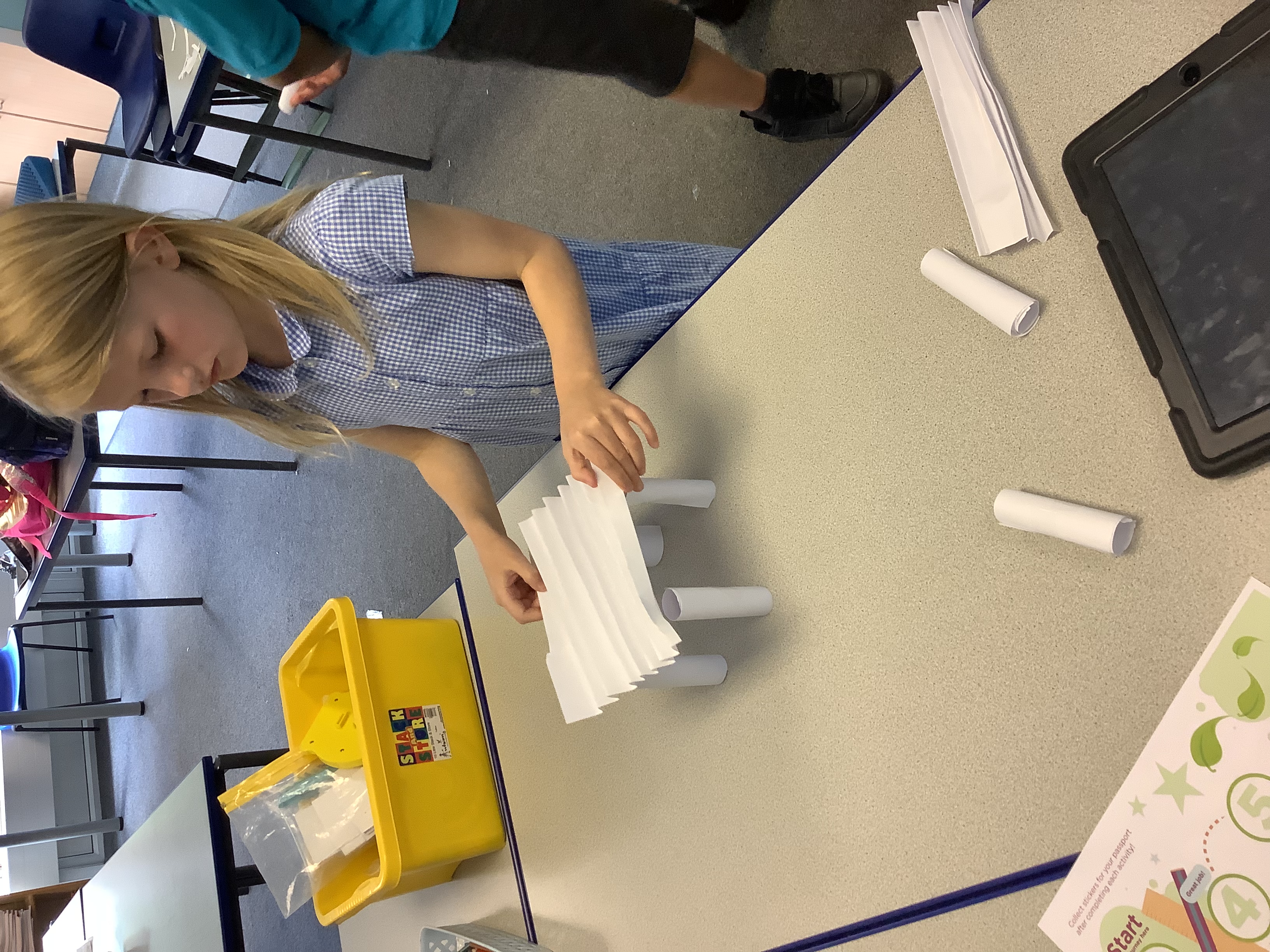Today we decided to complete the building bridges challenge where they had to try and make the strongest bridge using only paper. They soon worked out how to make their paper stronger but some had trouble with the supports. They all worked really well together and individually to improve their bridges until they worked.