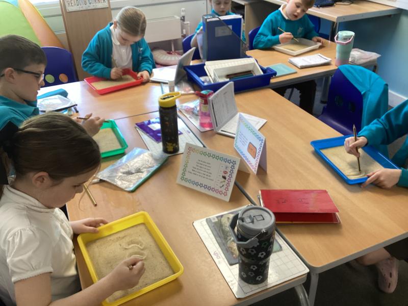 Today, year 2 have been working on their spellings using a sensory approach!
