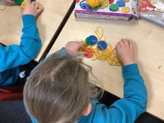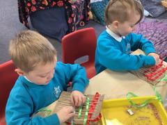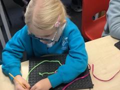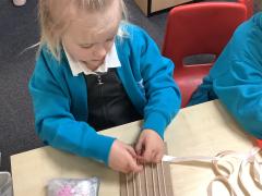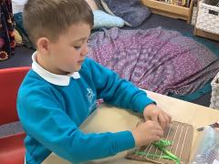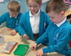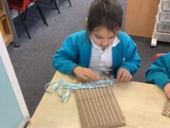 In this unit, the children have been developing and practising threading and weaving techniques using various materials and objects. The children have then applied their knowledge and skills to design and sew their own bookmarks.