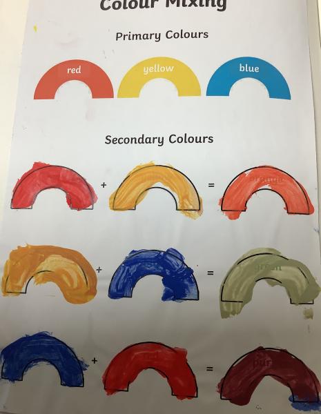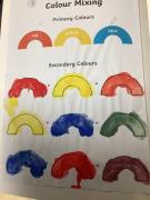 We have begun to know that the primary colours are: red, yellow and blue and that by adding more water to paint makes a colour less bright and that by adding more paint makes a colour brighter.
