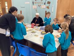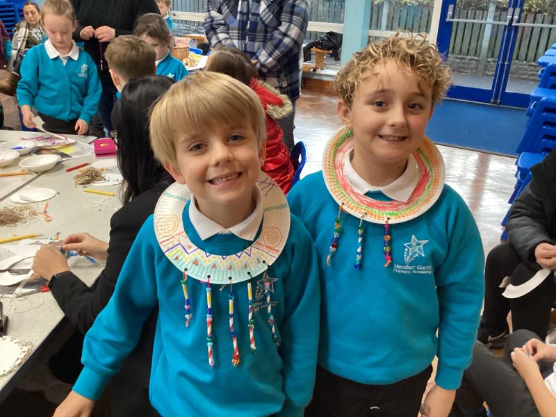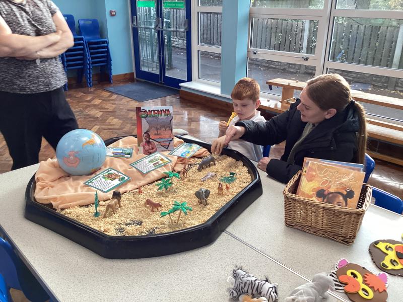 Year 2 had a great afternoon exploring African themed activities with their grown-ups! They tasted fruits from the book 'Handa's Surprise', drew African animals, made African necklaces, designed African patterns and explored African themed small world play!