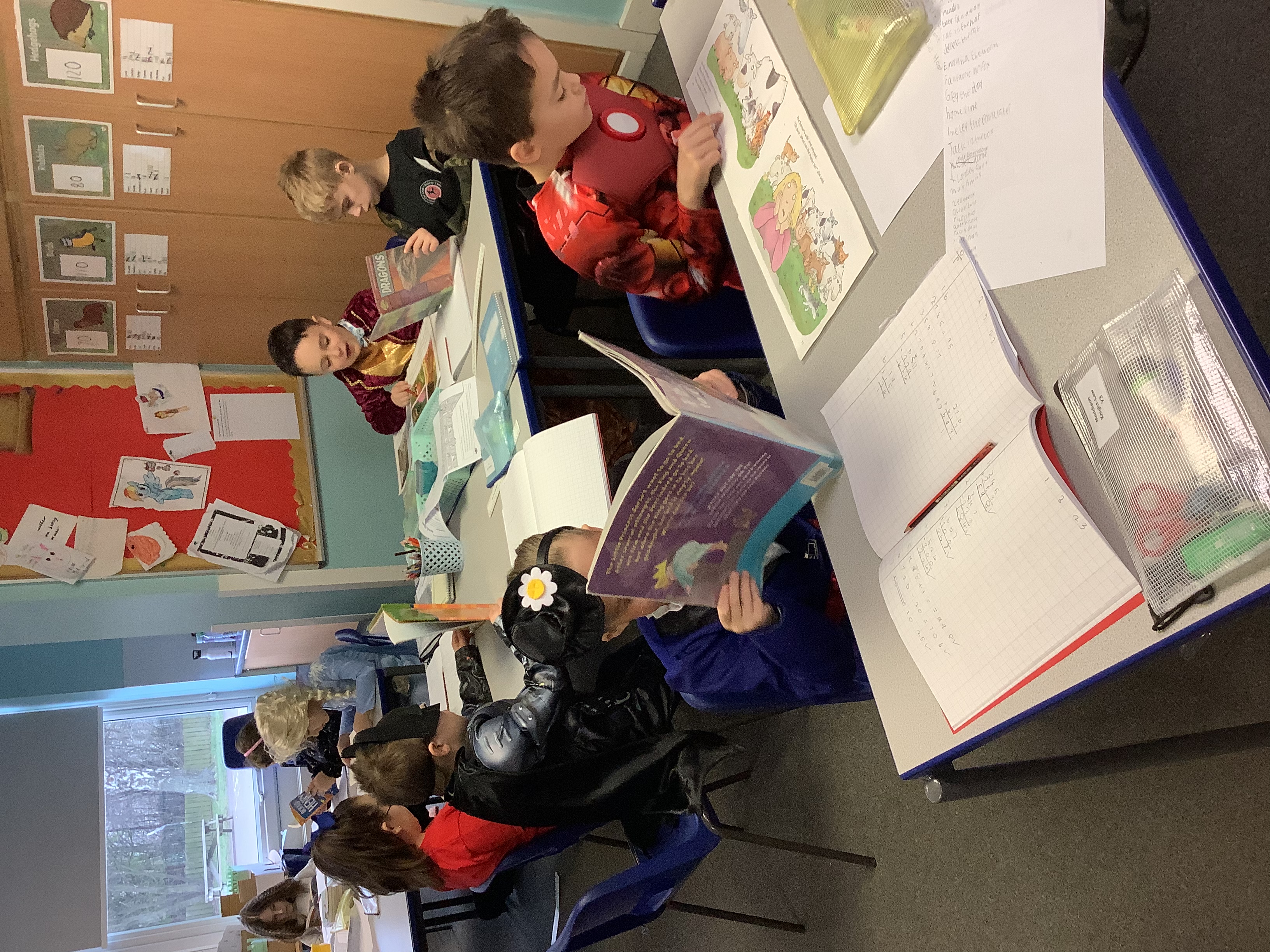 Year three we're enjoying their books during our stop, drop and read this morning. They all look fantastic in their costumes too!