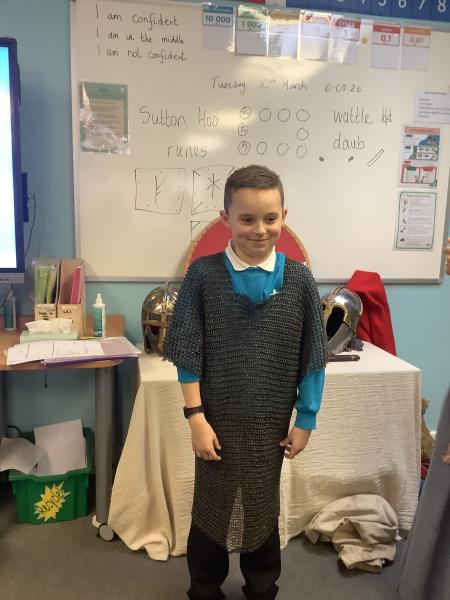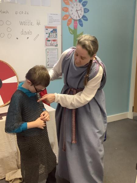 As part of our Anglo Saxon workshop, we looked at some of the armour Anglo Saxons wore during their battles.