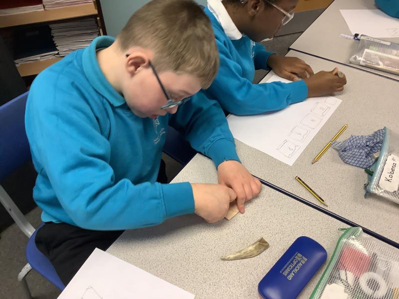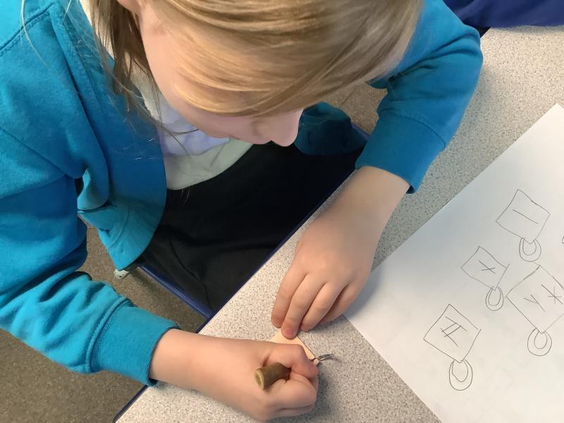 We spent sometime looking at Anglo Saxon runes. We made keyrings on leather, using Anglo Saxon designs.